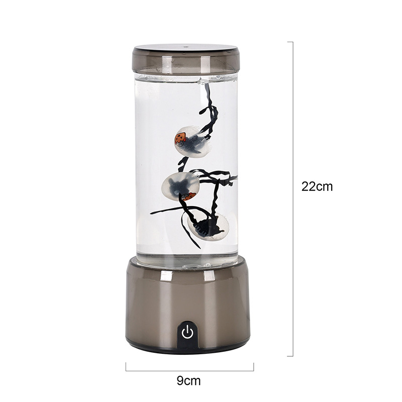 9*9*H:22cmWysokiej jakości lampa RGB LED Black Jellyfish oferowana jest przez chińskich producentów REDIGLE®. Wystrój lampy w pomieszczeniu. Zasilanie USB i 3 baterie „AA”. Jest wykonany z metalu. Zmiana koloru LED RGB i włącznik/wyłącznik oraz pływanie meduzami.