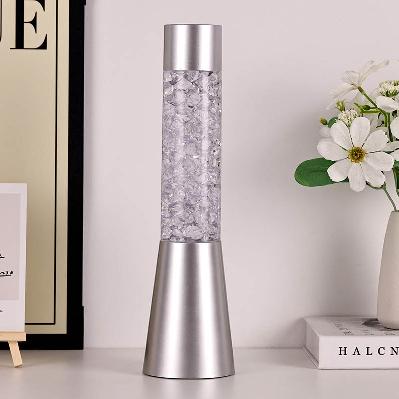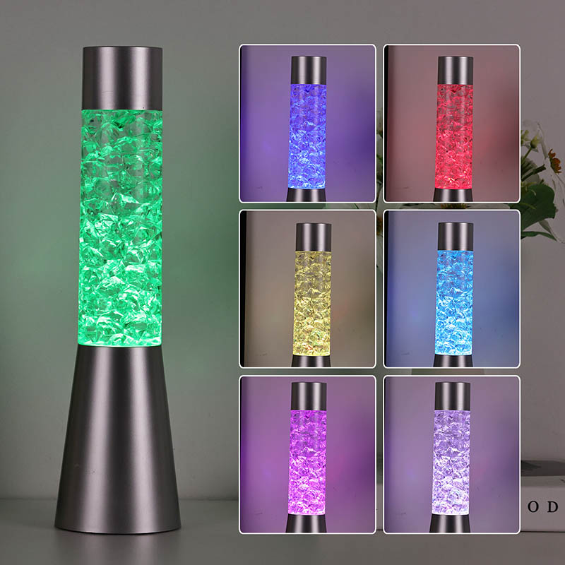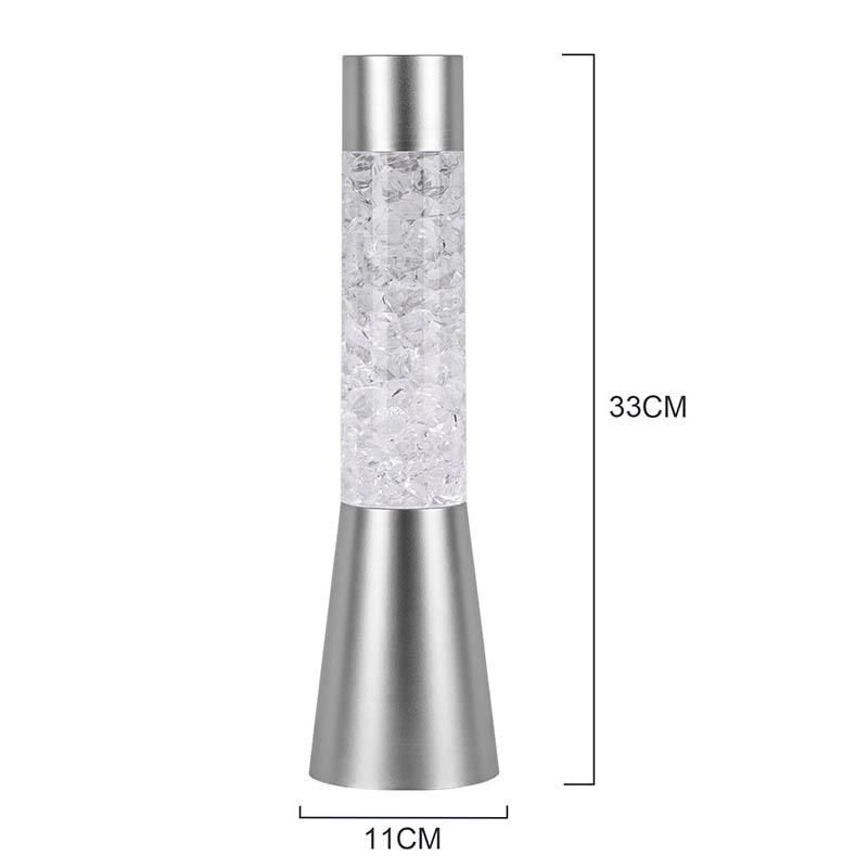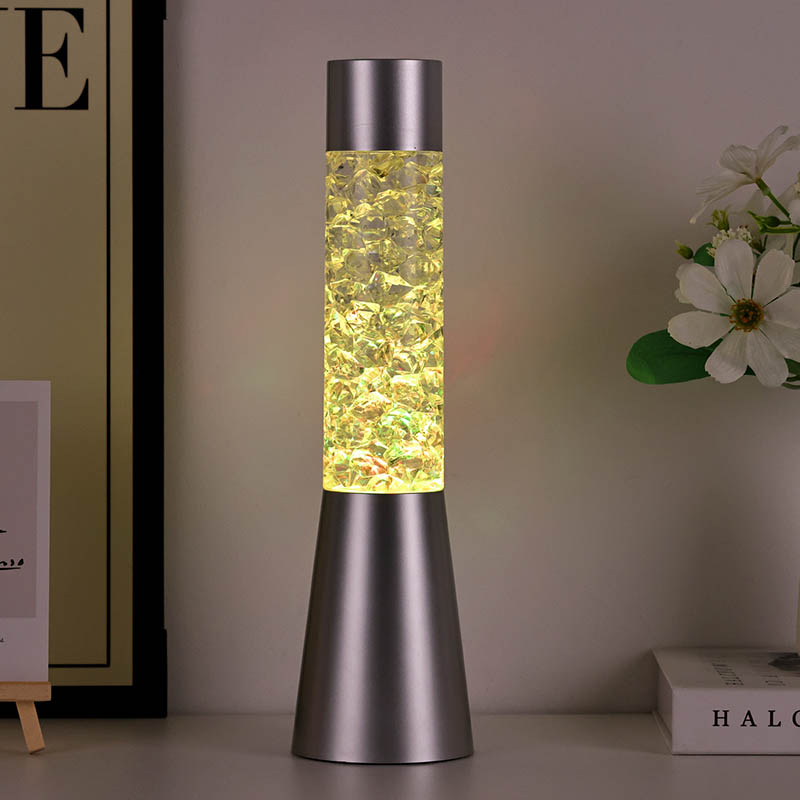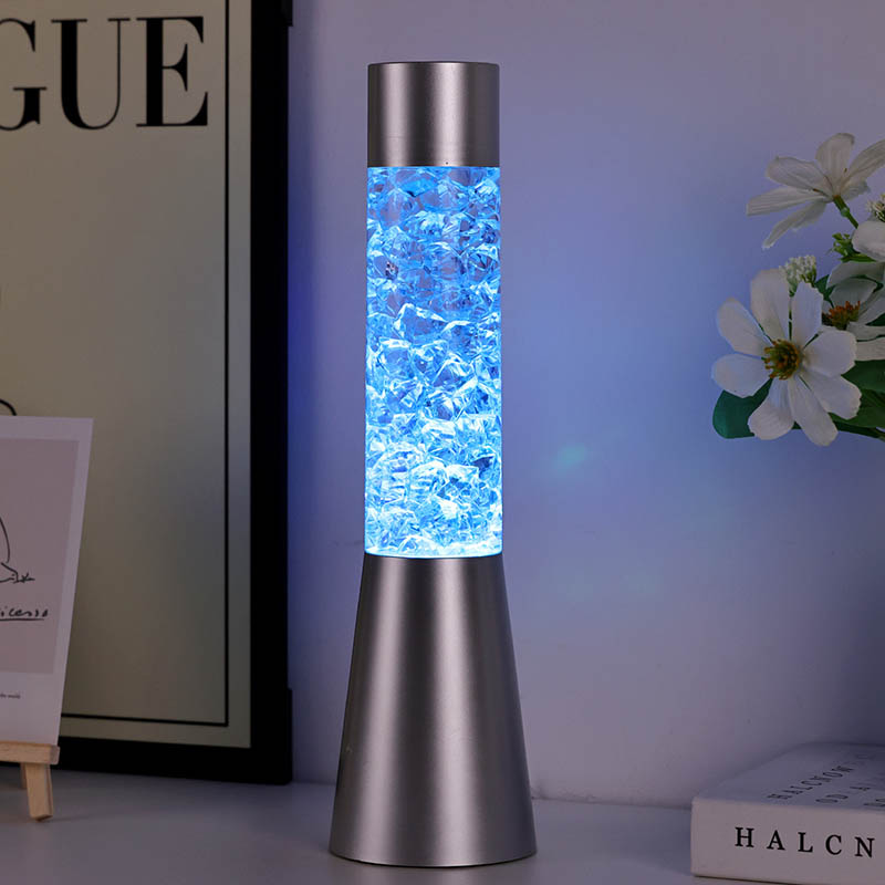 Zmieniająca kolor lampka nocna z płynnym brokatem w kształcie lodu ma elegancki i nowoczesny design z metalową podstawą i przezroczystą górną częścią wypełnioną kolorowymi, kryształowymi elementami. Podstawa lampy została zaprojektowana tak, aby była stabilna i elegancka, uzupełniając każdy styl wystroju domu. W przezroczystej części znajdują się kolorowe elementy, które poruszają się delikatnie, tworząc hipnotyzujący efekt wizualny. Lampa dostępna jest w trzech różnych wersjach kolorystycznych – czerwonej, niebieskiej i zielonej – co pozwala wybrać idealny odcień pasujący do wystroju wnętrza.