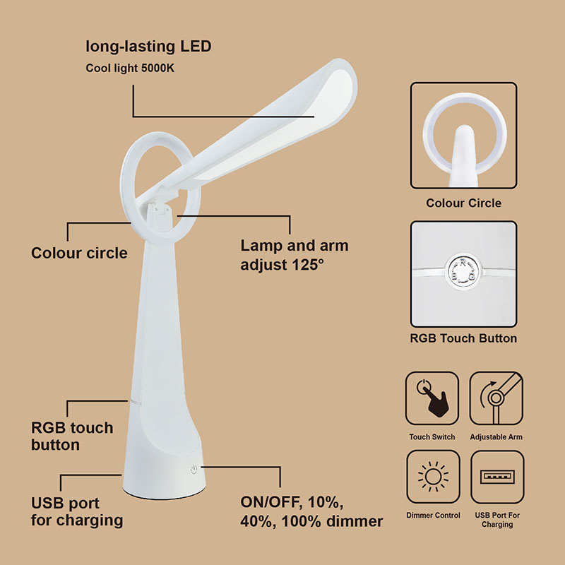 Na tylnej lampie biurkowej znajduje się port ładowania USB