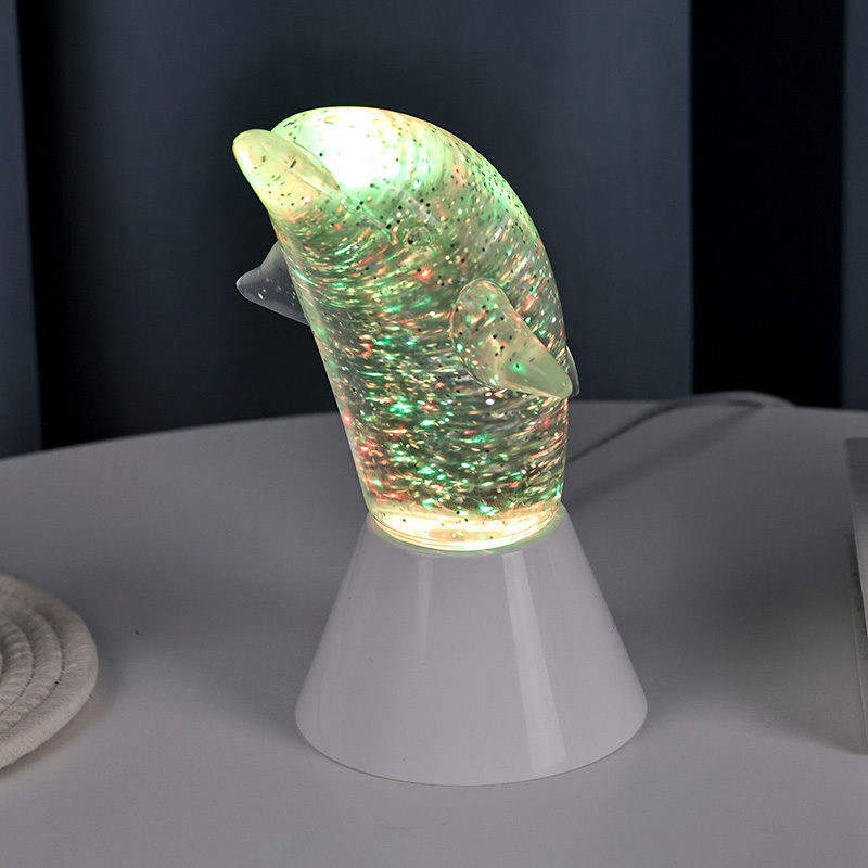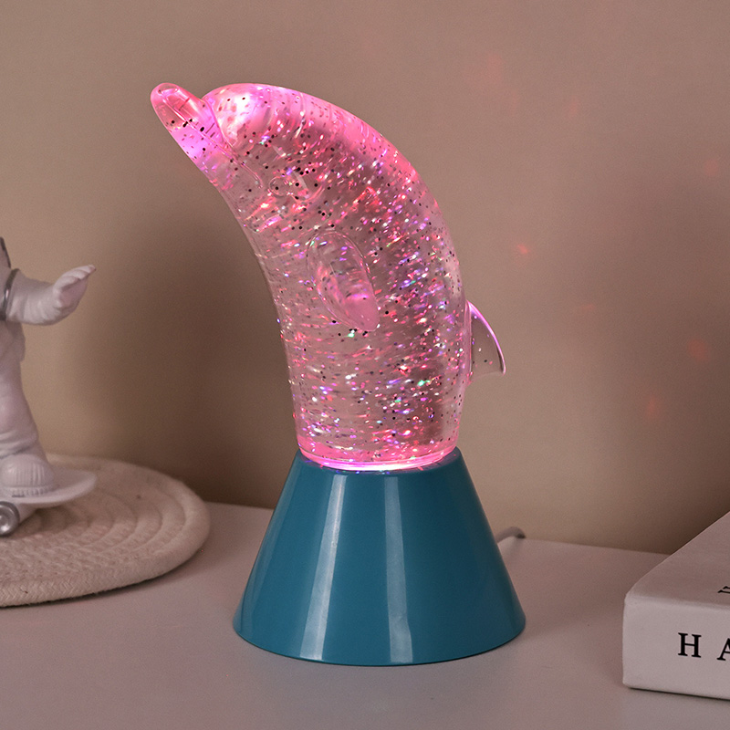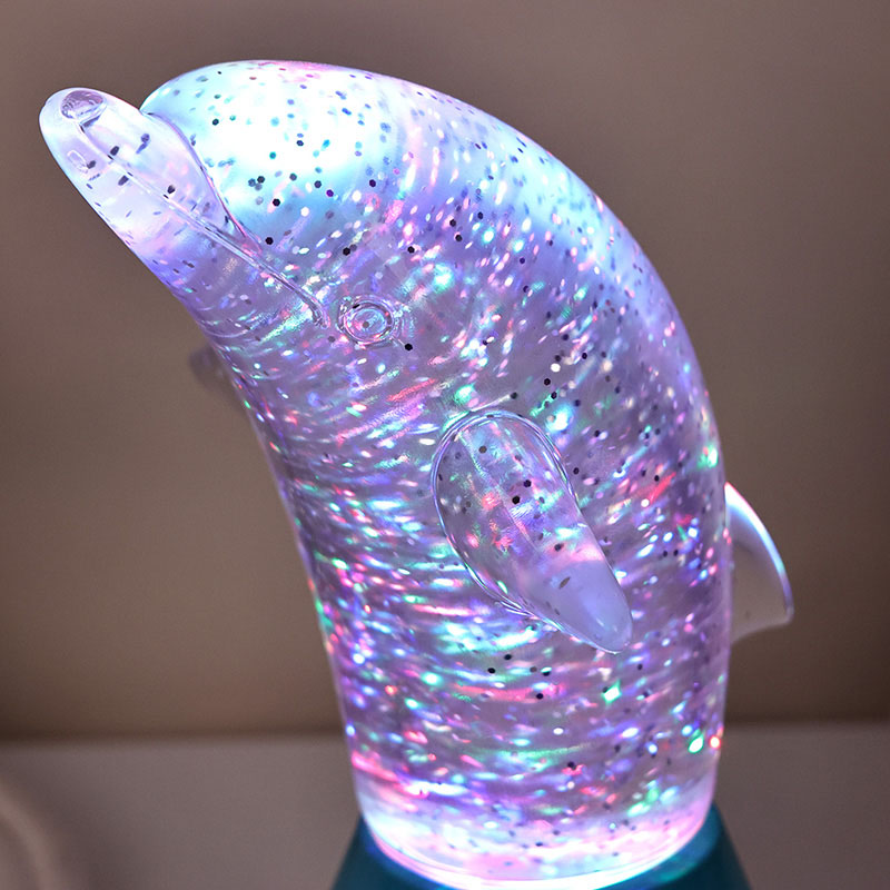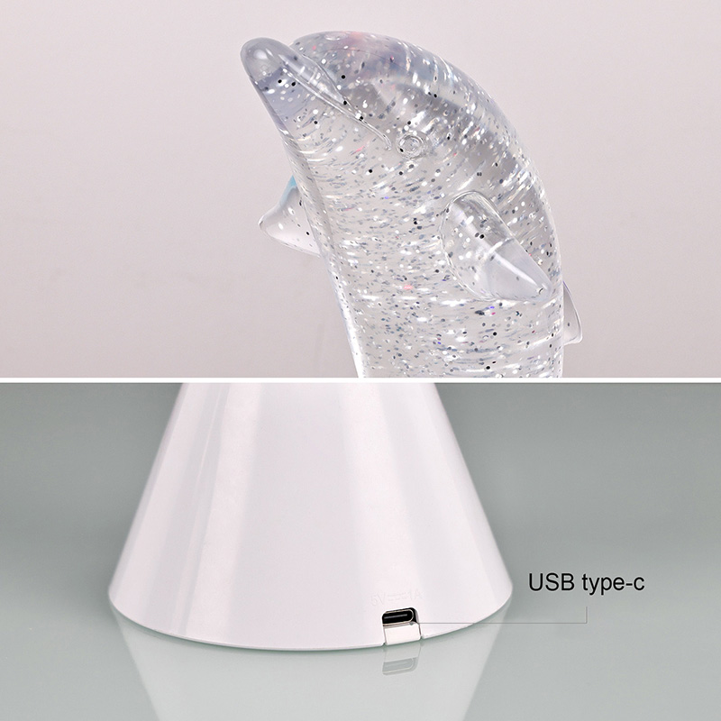 Dolphin Kid Gift Glitter RGB Night Light został zaprojektowany w kształcie uroczego delfina, z gładkimi liniami i wykwintnymi detalami doskonale przywracającymi zwinną postawę delfinów. Wewnątrz przezroczysta muszla delfina w kształcie cekinów. Nieregularne ruchy pięknie oddają kolory, tworząc spokojną i tajemniczą atmosferę. Za każdym razem, gdy spojrzysz na tę lampę, poczujesz się jak w głębokim oceanie. Poczuj wśród nich nieskończony urok natury. Wyposażona w zaawansowaną technologię oświetlenia zmieniającą kolory RGB, pozwalającą na swobodne przełączanie pomiędzy wieloma kolorami. Niezależnie od tego, czy jest to ciepły pomarańcz, romantyczny róż czy spokojny błękit,