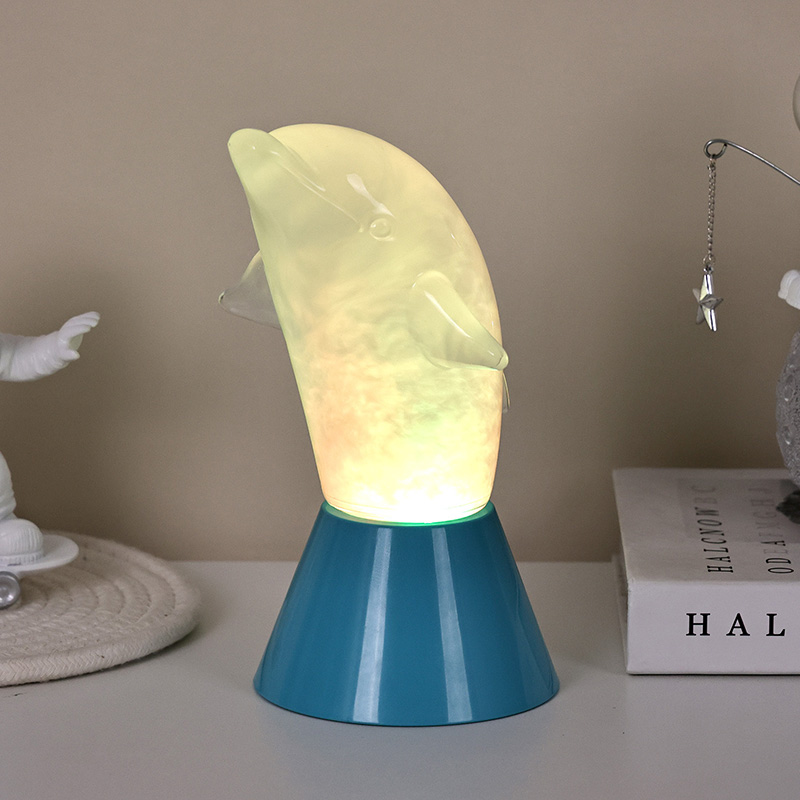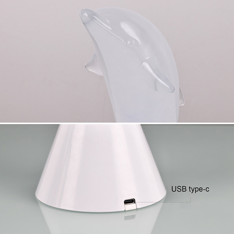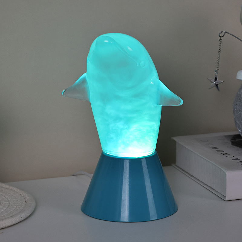 Dolphin Kid RGB Nigh Light został zaprojektowany w kształcie uroczego delfina, z gładkimi liniami i wykwintnymi detalami doskonale przywracającymi zwinną postawę delfinów. Wewnątrz przezroczystej muszli delfina płynąca mglista ciecz przypomina fale w oceanie, delikatnie kołysząc się, tworząc spokojną i tajemniczą atmosferę. Za każdym razem, gdy spojrzysz na tę lampę, poczujesz się, jakbyś znalazł się w głębinach oceanu, doświadczając nieskończonego uroku natury