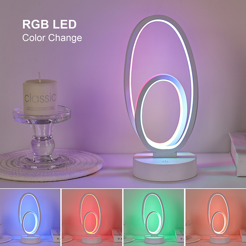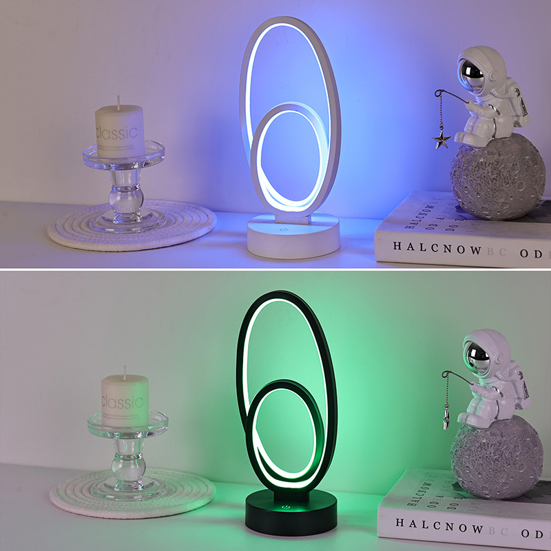 Lampa biurkowa RGB z podwójnym okrągłym kloszem to artystyczny akcent do przestrzeni domowych, wyposażona w bezpieczny zasilacz niskiego napięcia DC zapewniający stabilną i energooszczędną pracę, zapewniającą bezpieczne użytkowanie. Nadaje się do różnych scenariuszy, takich jak salony, pokoje dziecięce, gabinety i sypialnie