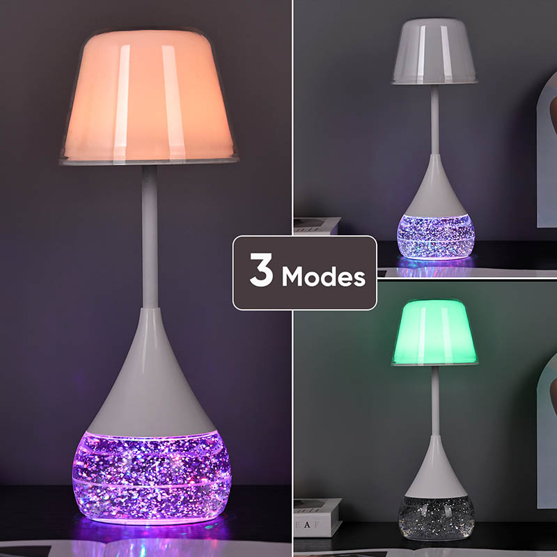 Nasza lampa zmieniająca kolor RGB została zaprojektowana tak, aby oferować niezrównaną wszechstronność w oświetleniu. Dzięki technologii RGB możesz cieszyć się widmem kolorów, od czerwonego, pomarańczowego, żółtego, zielonego, niebieskiego, fioletowego i różowego. Ale to nie wszystko - elegancja i innowacja LED biurka z bazą RGB Glitter ma również unikalną konstrukcję, która pozwala dostosować intensywność każdego koloru, tworząc naprawdę konfigurowalne wrażenia oświetleniowe.