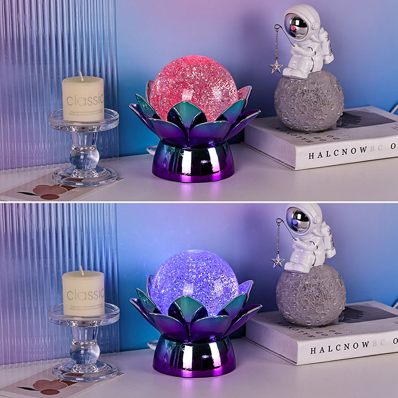 Ta lampka nocna z kryształowej kuli w kształcie lotosu to coś więcej niż tylko lampa — to symbol czystości, pokoju,