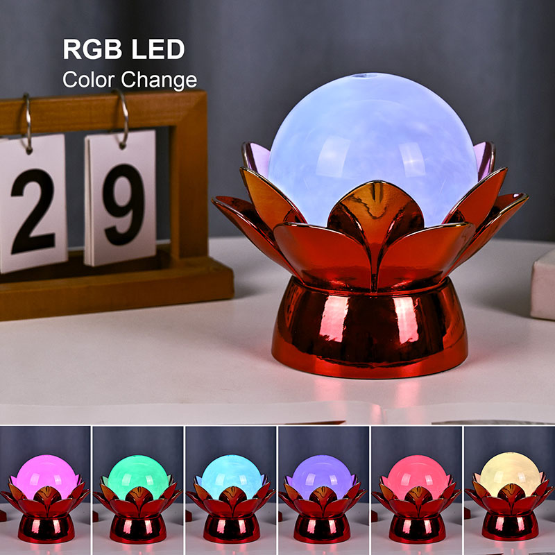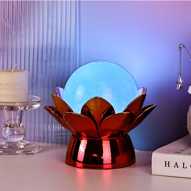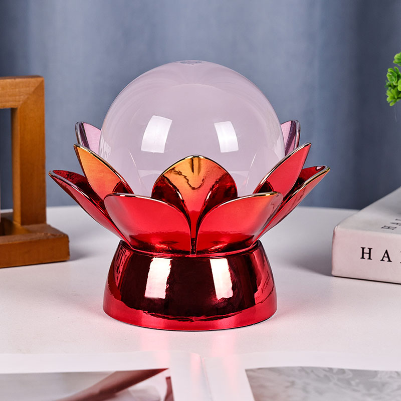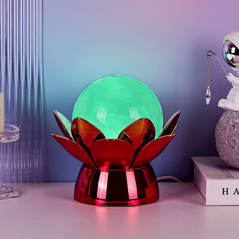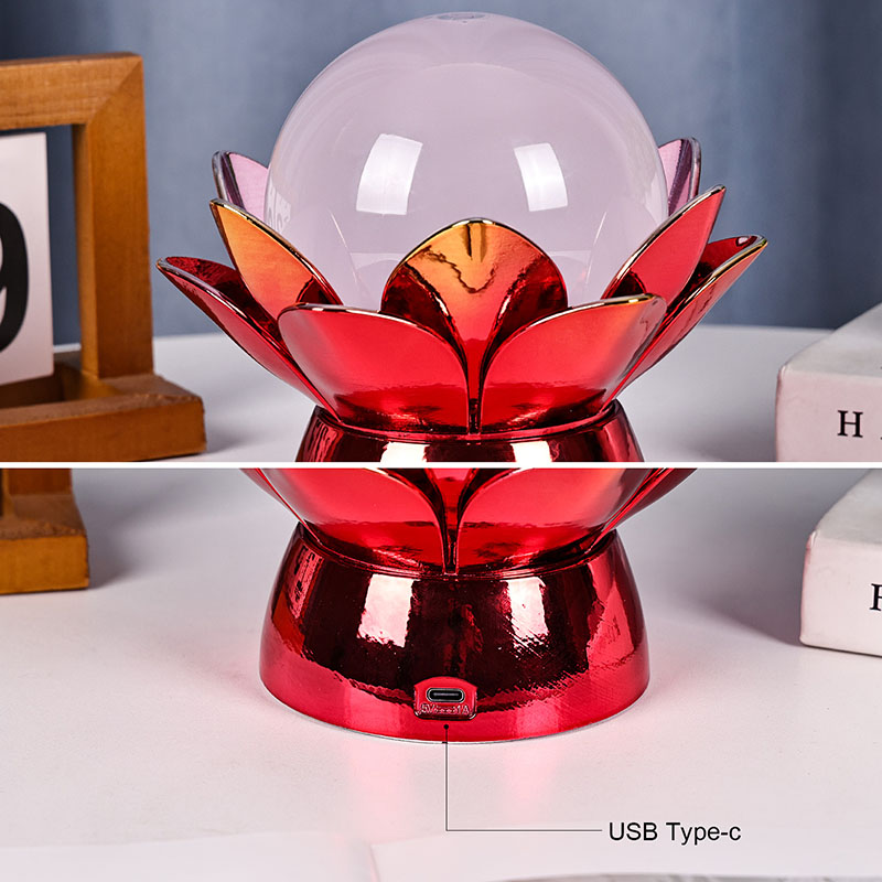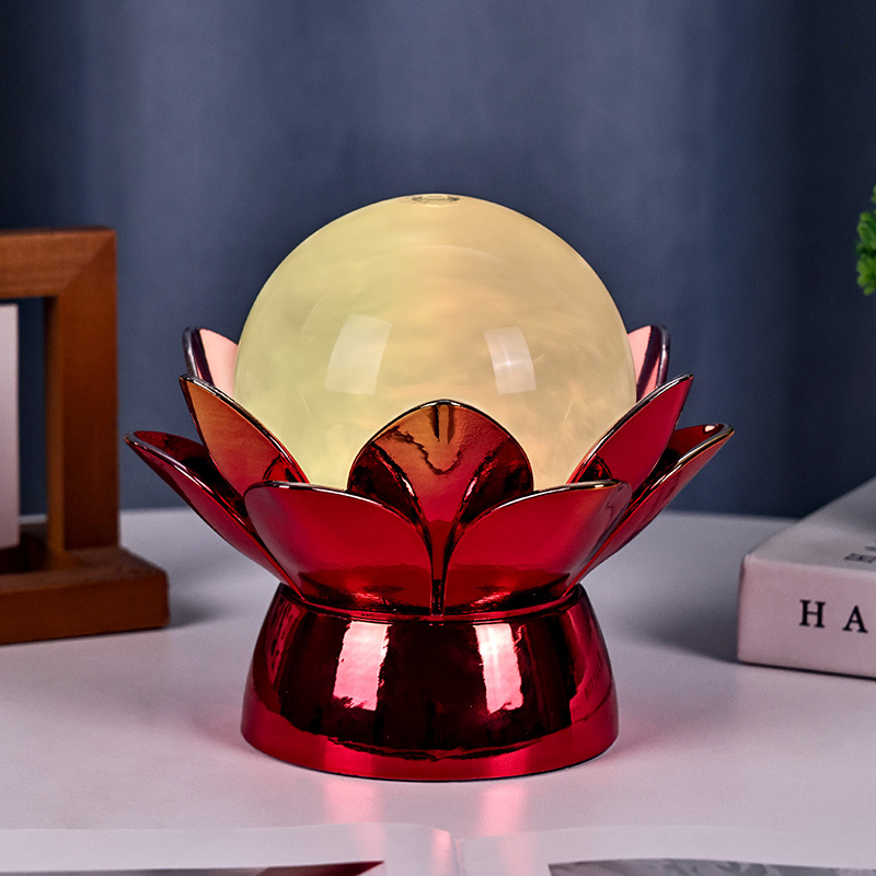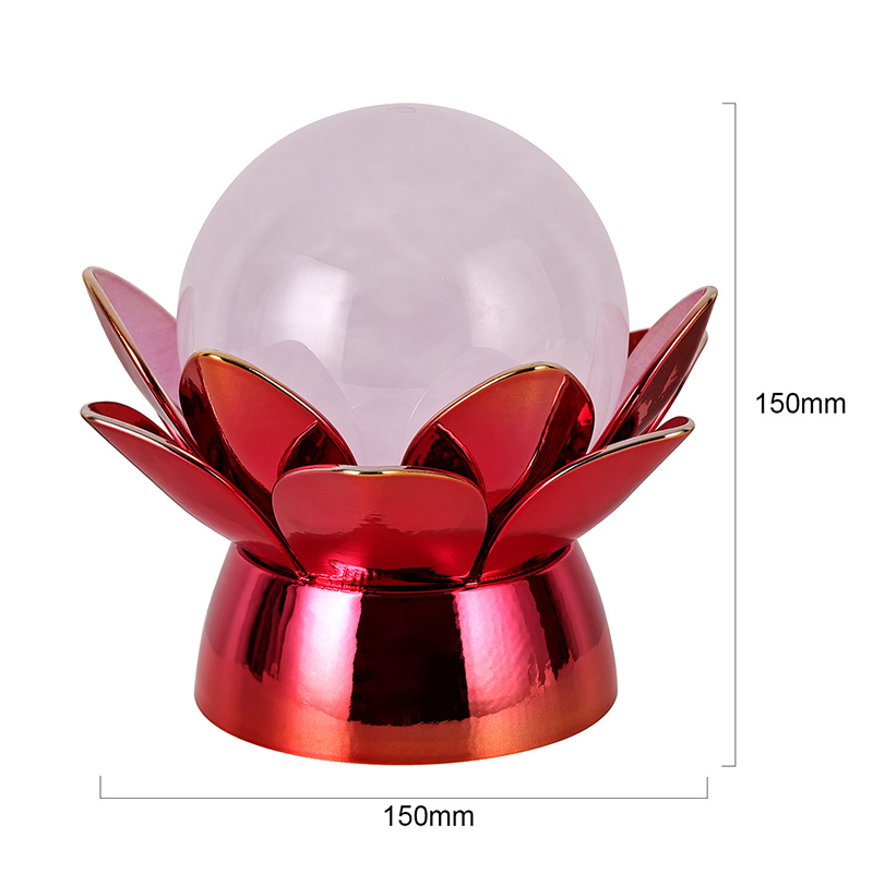 Wykonana z wysokiej jakości materiałów podstawa wykonana jest z polerowanego metalu z efektownym czerwono-złotym wykończeniem, które pięknie odbija światło, dodając głębi i bogactwa jego wyglądowi. Wzór lotosu służy nie tylko jako estetyczny punkt centralny, ale także niesie ze sobą symboliczne znaczenie zakorzenione w tradycjach wschodnich – reprezentuje oświecenie, odporność i harmonię. Odblaskowa powierzchnia poprawia efekt wizualny, dzięki czemu lampa świeci nawet w warunkach słabego oświetlenia.