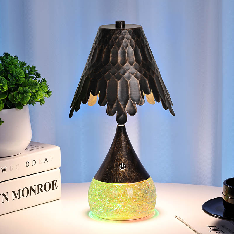 Ustaw ciepłe światło lampy biurka z butelką RGB brokatową jako premium, innowacyjne rozwiązanie oświetleniowe, które łączy funkcjonalność z artystycznym talentem. Podkreśl jego unikalne funkcje, takie jak dynamiczna podstawa RGB i regulowane tryby oświetlenia, aby odróżnić ją od konkurentów.