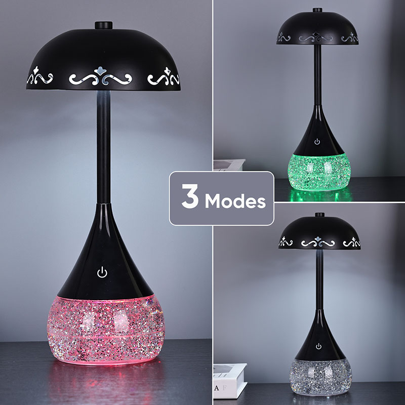 Wewnątrz podstawy przezroczystą butelkę mieści płyn, który porusza się nieregularnie, tworząc urzekający efekt wizualny. Lampka biurka LED z płynem o kształcie kwiatów nie jest zwykłym płynem; Został specjalnie sformułowany, aby stworzyć hipnotyzujący taniec połysku i wir. Gdy płyn się porusza, odbija światło w ciągle zmieniającym się wzorze, tworząc ciągle ewoluujące wrażenia wizualne.