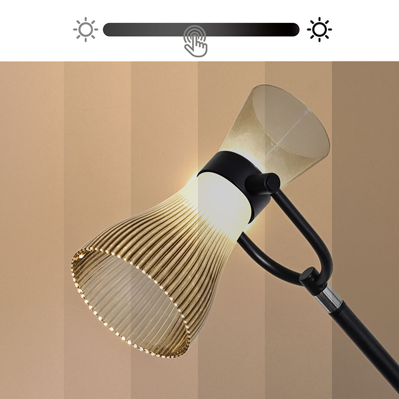 Nowoczesna lampa podłogowa LED ze szklanym kloszem wyposażona jest w zaawansowane źródła światła LED, które emitują miękkie i jasne światło, skutecznie chroniąc oczy oraz redukując zmęczenie i dyskomfort spowodowane długotrwałym używaniem oczu.