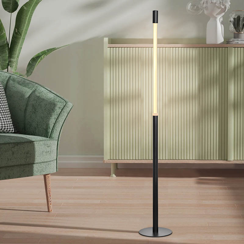 materiałów, stał się idealnym wyborem. Nowo zaprojektowana czarna lampa podłogowa LED z regulowaną mocą światła przyjmuje minimalistyczną koncepcję projektową o prostym i liniowym kształcie. Jednoczęściowa konstrukcja nie tylko oszczędza miejsce, ale także nadaje lampie
