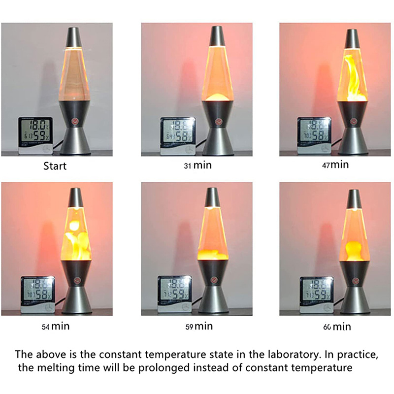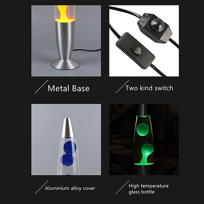 Srebrna podstawa i przezroczysta butelka, inny kolor wosku i płynu |