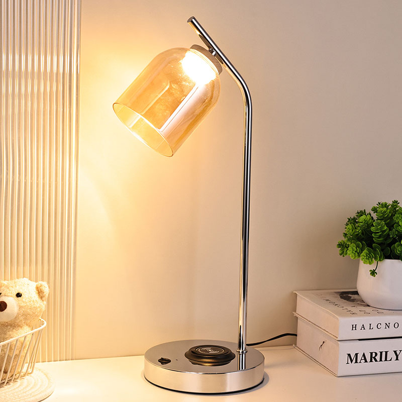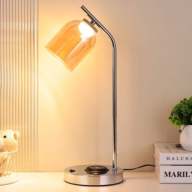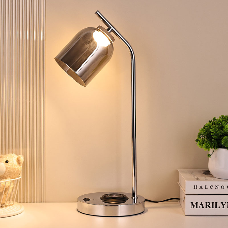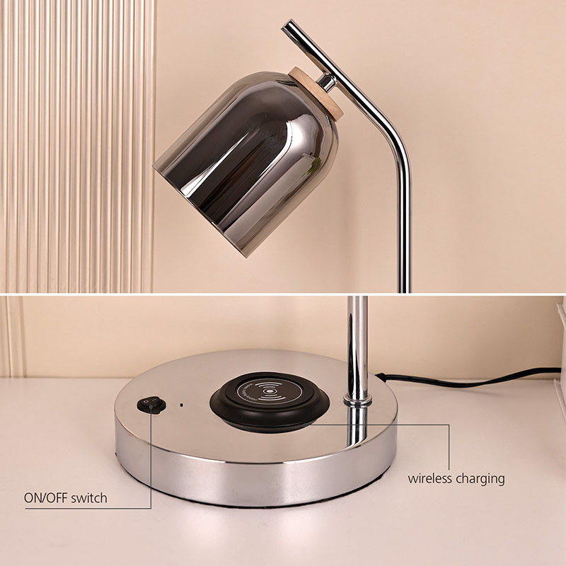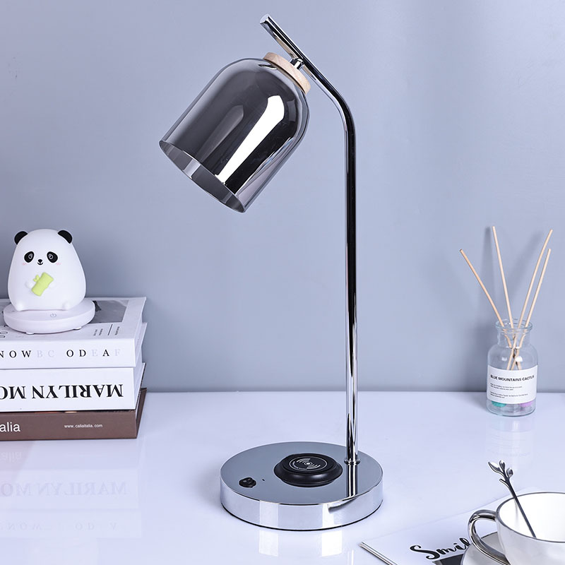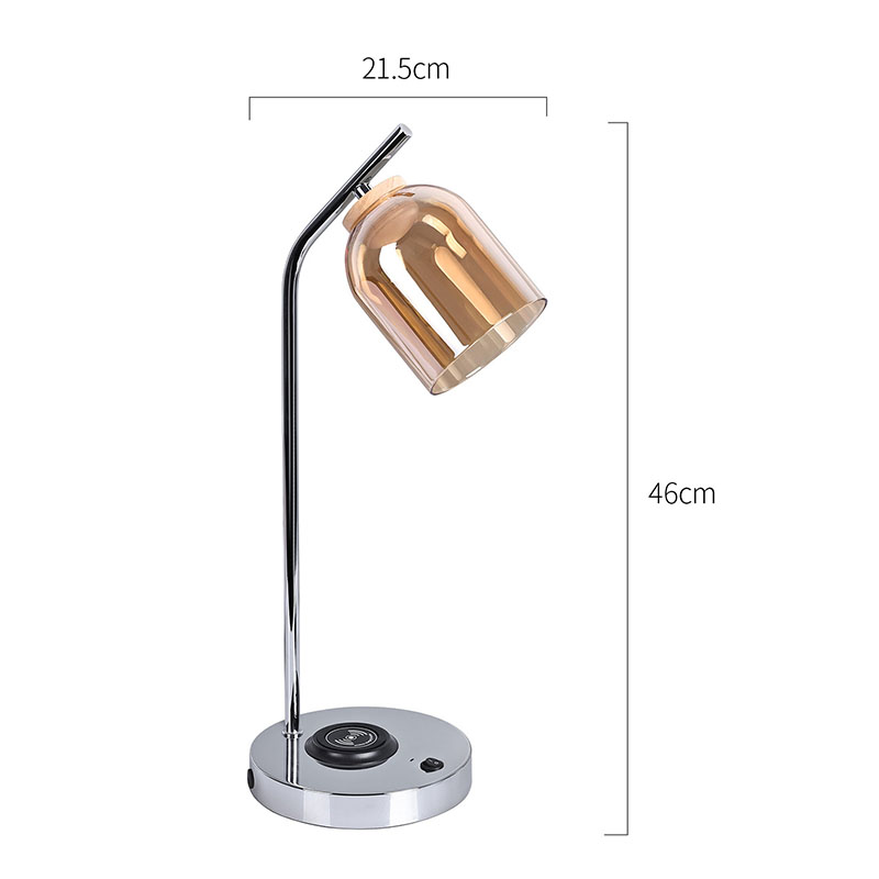 Lampa biurkowa LED QI ze szklanym kloszem wykonanym z luksusowego szklanego klosza