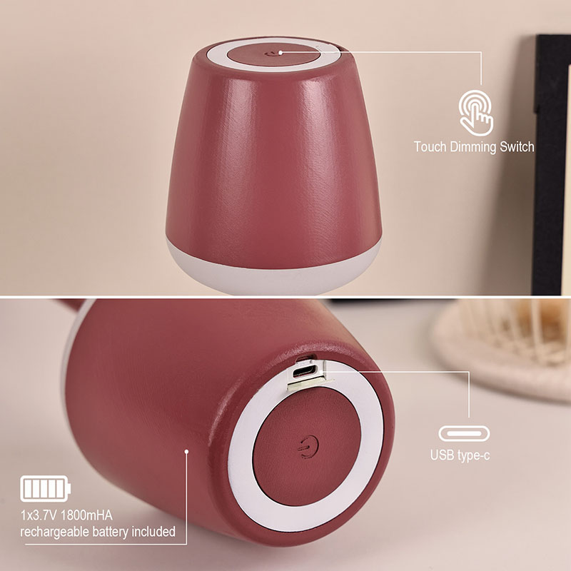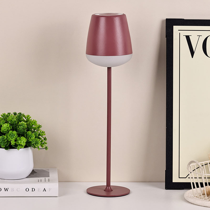 Lampa biurkowa LED z wysokim kloszem w kolorze czerwonego wina wyposażona jest w wygodny system zasilania akumulatorowego, dzięki czemu nie musisz się już martwić o znalezienie gniazdka. Niezależnie od tego, czy chwilowo czytasz na sofie w salonie, czy tworzysz ciepłą atmosferę podczas nocy na kempingu na świeżym powietrzu, po prostu delikatnie zainstaluj baterię, a natychmiast się zaświeci, zapewniając jasność