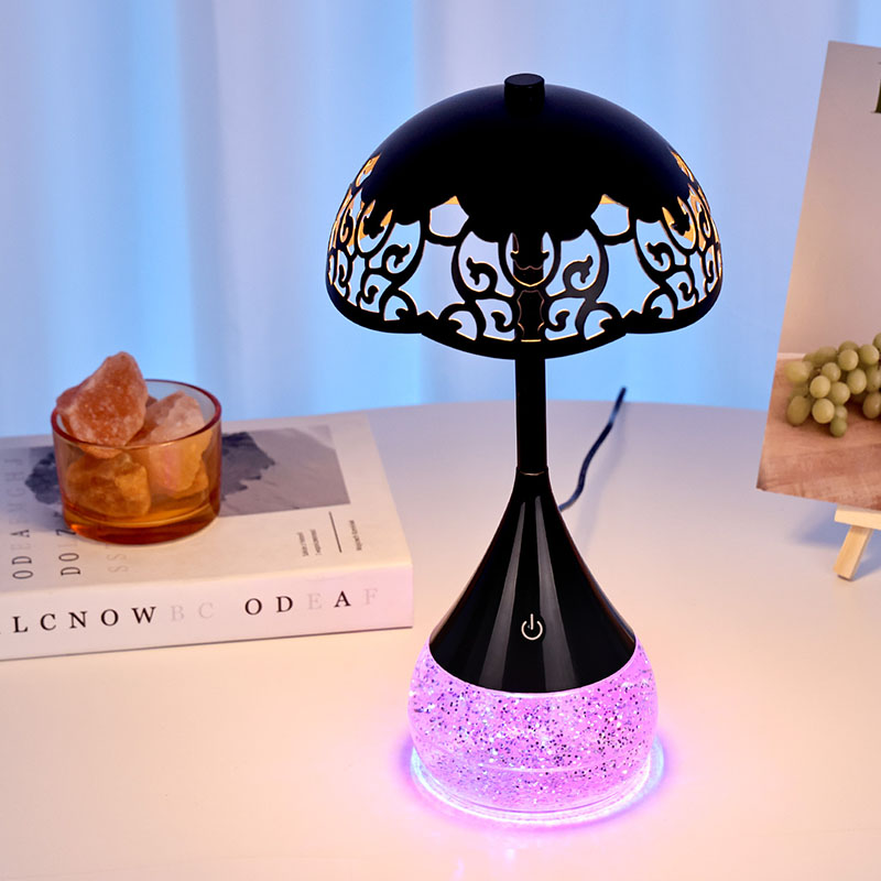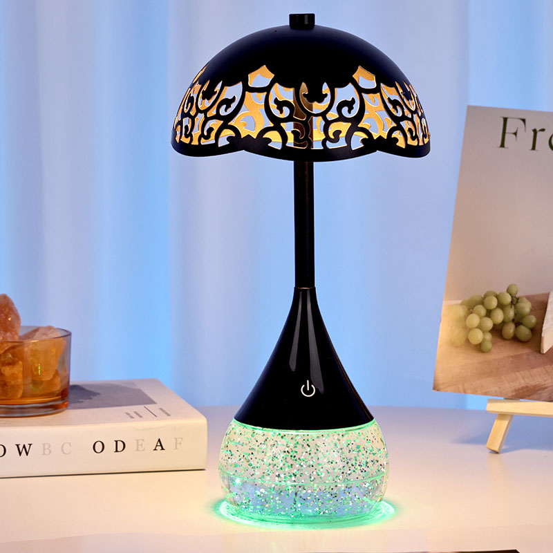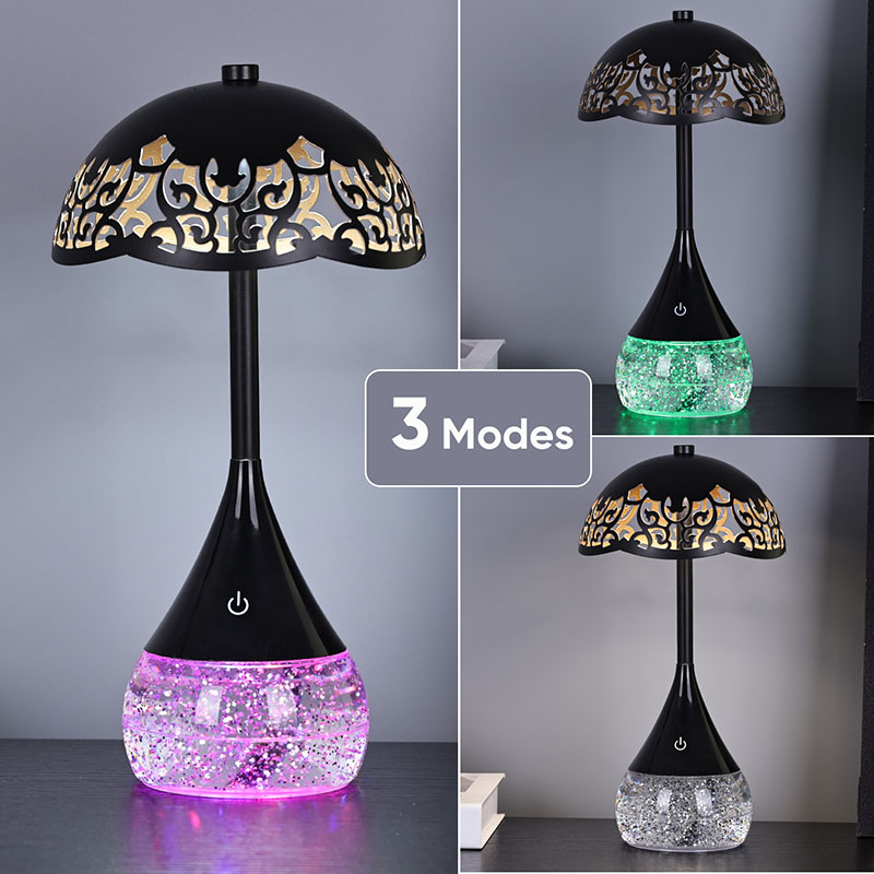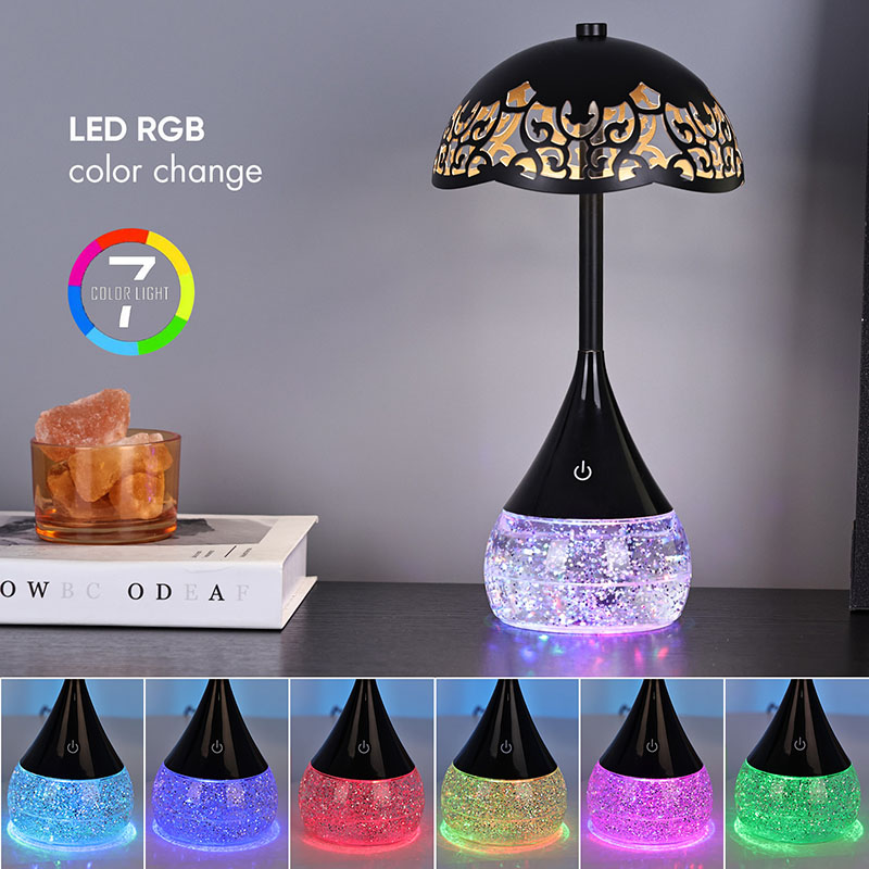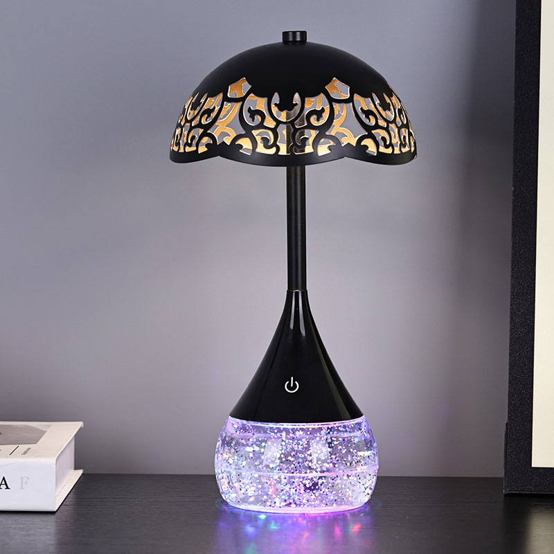 Wewnątrz podstawy przezroczystą butelkę mieści płyn, który porusza się nieregularnie, tworząc urzekający efekt wizualny. Kolorowa podstawa RGB Lampa biurka LED o kształcie parasola nie jest zwykłym płynem; Został specjalnie sformułowany, aby stworzyć hipnotyzujący taniec połysku i wir. Gdy płyn się porusza, odbija światło w ciągle zmieniającym się wzorze, tworząc ciągle ewoluujące wrażenia wizualne.