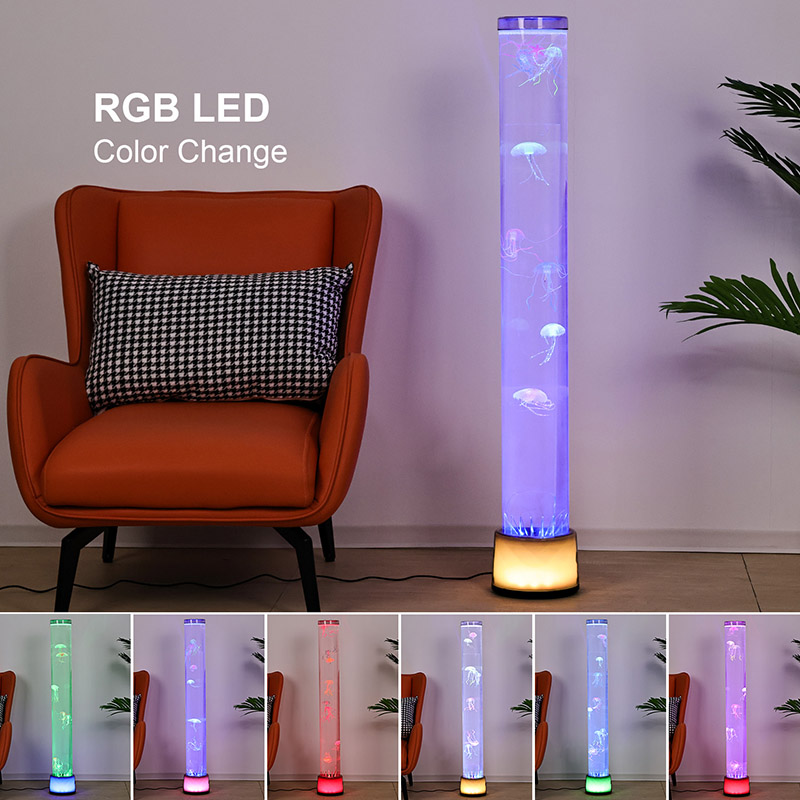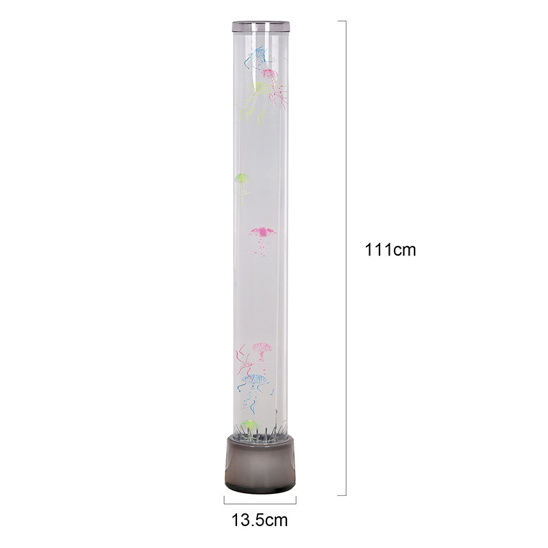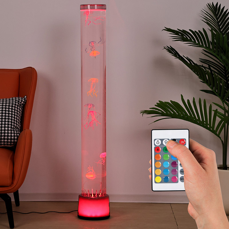 39,5*39,5*113 CMLampa podłogowa RGB Jellyfish to kreatywny element wystroju domu, który łączy nowoczesną technologię z naturalną estetyką. Dzięki marzycielskim efektom światła i cienia oraz realistycznemu wyglądowi meduzy dodaje wnętrzom tajemniczej i spokojnej oceanicznej atmosfery. Cały projekt wykonany jest z akrylu o wysokiej przezroczystości, a jego smukły i elegancki kształt przypomina miniaturowy podwodny świat, zanurzając Cię tak, jakbyś był głęboko pod powierzchnią morza.