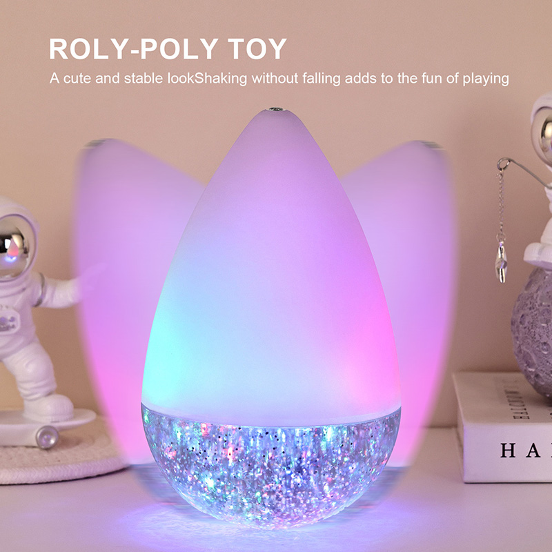 Cechą charakterystyczną jest to, że niezależnie od tego, jak się trzęsie, kolorowa lampka nocna Roly-poly RGB z brokatem będzie wstać