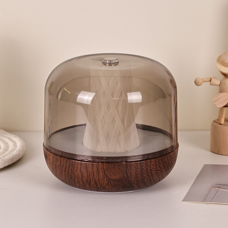 3. Materiały i wykonanie: przezroczysta plastikowa osłona + podstawa z efektem drewna dla wyrafinowanej tekstury