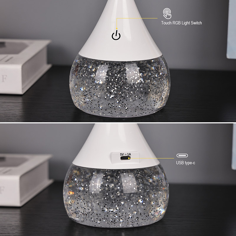 Biała lampka nocna z błyszczącym brokatemFunction 2: