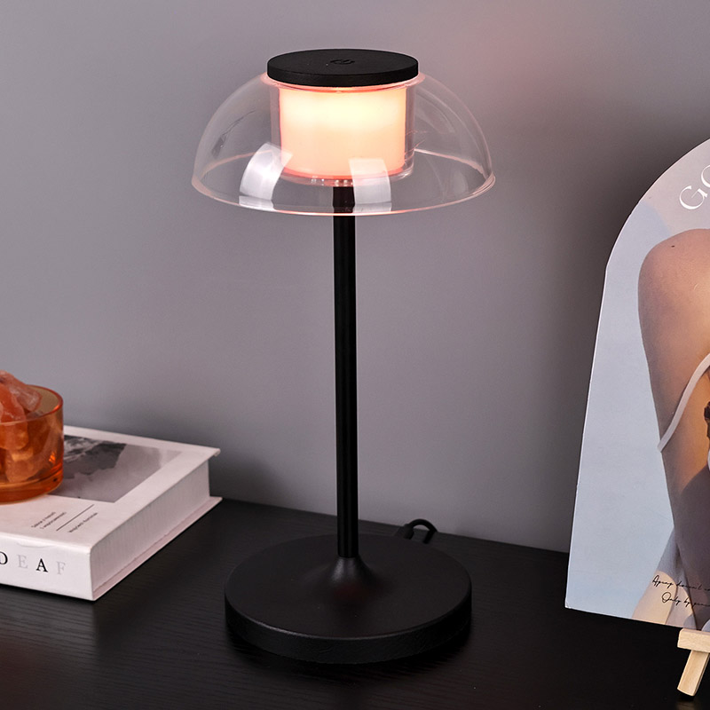 Precyzyjnie wykonana lampa stołowa LED RGB ma elegancki i elegancki wygląd wykonany z trwałych materiałów plastikowych. Głowicę lampy zaprojektowano w unikalnym kształcie kopuły, tworząc efektowny wizualnie i nowoczesny wygląd. Niezależnie od tego, czy umieścisz ją na biurku, stoliku nocnym, czy na innej powierzchni, ta lampa z pewnością urzeka i zachwyca.