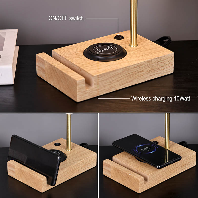 Ładowanie bezprzewodowe 10WPodnieś swoją przestrzeń dzięki najwyższemu stylowi i funkcjonalności: tradycyjna lampa stołowa LED w naturalnym stylu