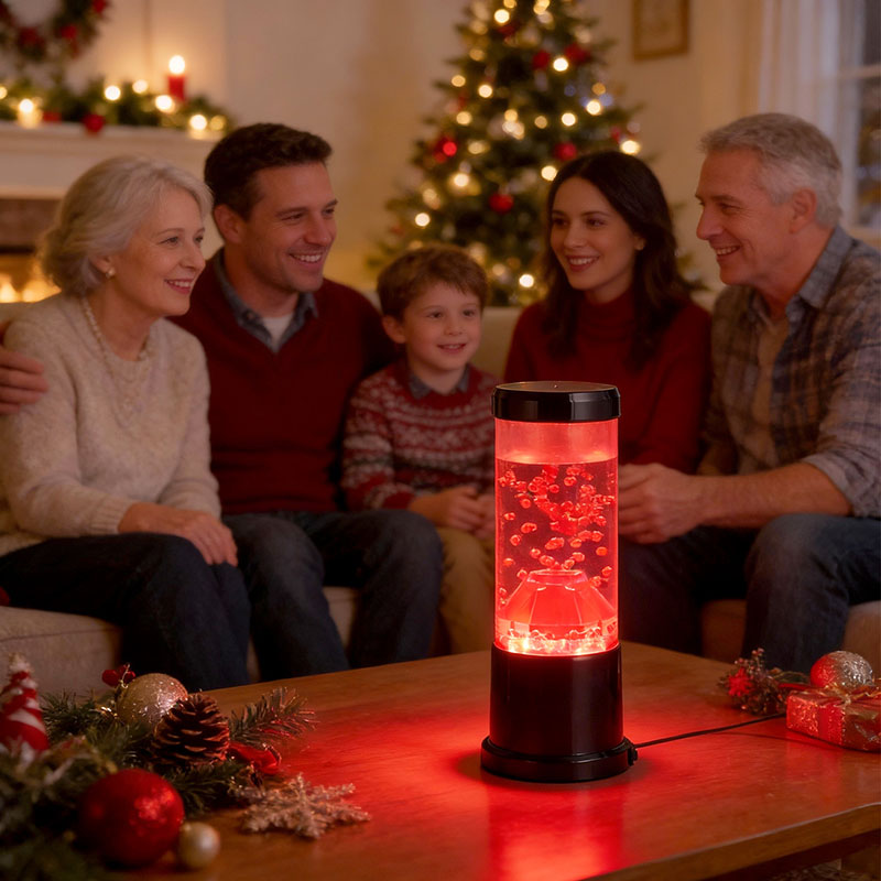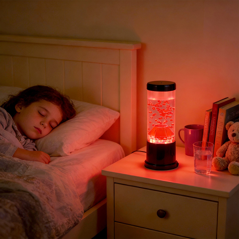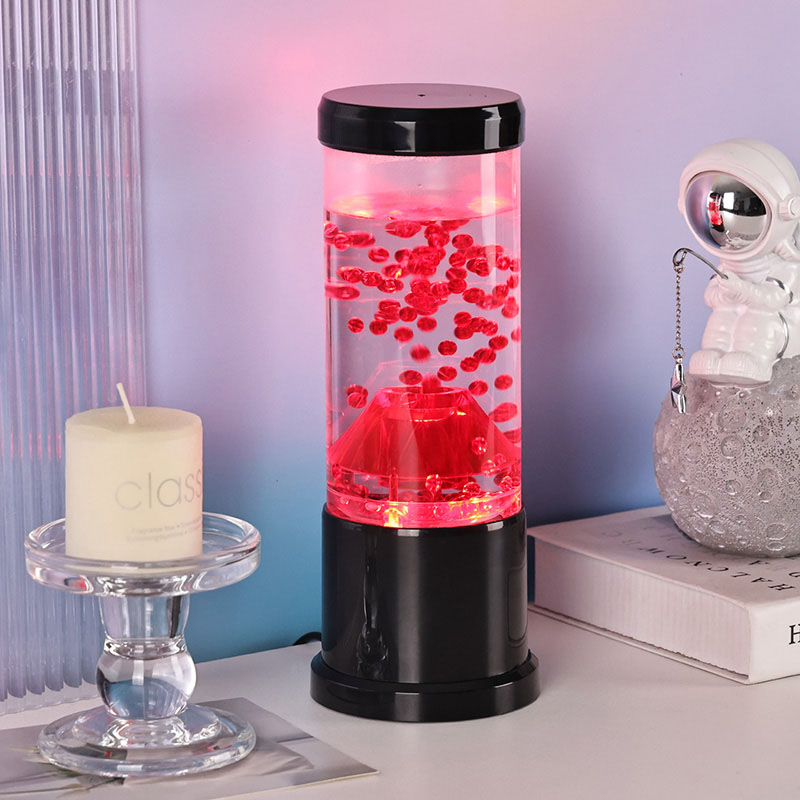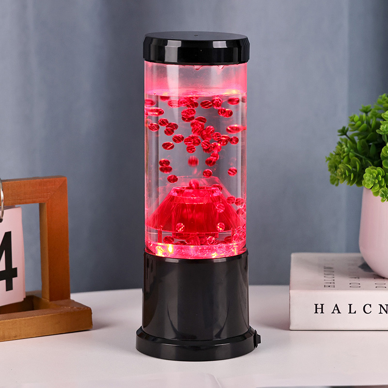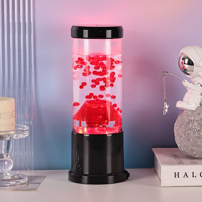 Centralnym elementem lampki nocnej jest przezroczysta kolumna przypominająca krater wulkanu. Wewnątrz tej kolumny znajdziesz żywy pokaz czerwonych kul, przypominających stopioną lawę przepływającą przez skorupę ziemską. Kule te unoszą się z wdziękiem w przezroczystej cieczy, tworząc dynamiczny i ciągle zmieniający się efekt wizualny. Gdy światło prześwieca, rzuca ciepły i zachęcający blask, idealny do stworzenia przytulnej atmosfery w każdym pomieszczeniu.