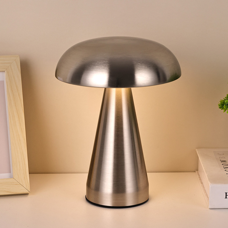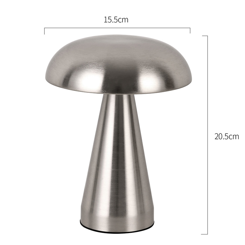 Dotykowy przełącznik ściemnianiaCałkowicie metalowa lampa biurkowa LED z kloszem grzybkowym jest wykonana w całości z metalu i ma wyjątkowy wygląd. Kształtem imituje grzyba, posiada wycięte wewnątrz grzybka światełka o regulowanej mocy. Całkowicie metalowa lampa biurkowa LED z kloszem w kształcie grzybka nadaje się do umieszczenia w pokojach dziecięcych w otoczeniu przypominającym rozmowę. Metalowa lampa biurkowa LED z kloszem w kształcie grzybka dobrze uzupełnia dziecięcy świat i zapewnia ciepłe oświetlenie pokoju. Aby ułatwić mobilność, lampa biurkowa ma również wbudowany akumulator, z którego można korzystać w dowolnym miejscu i czasie